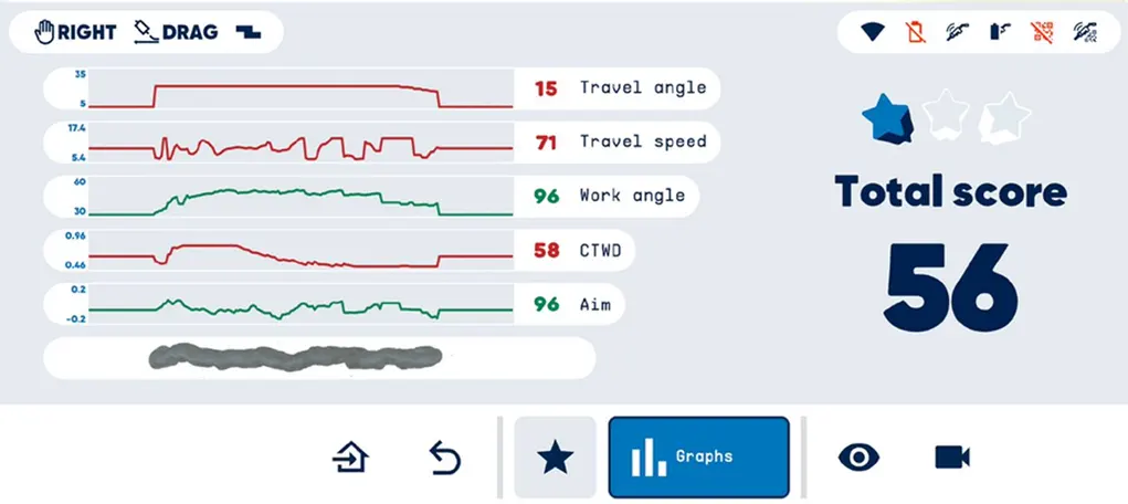 Vous pouvez revoir les performances de soudage du début à la fin du cordon de soudure.